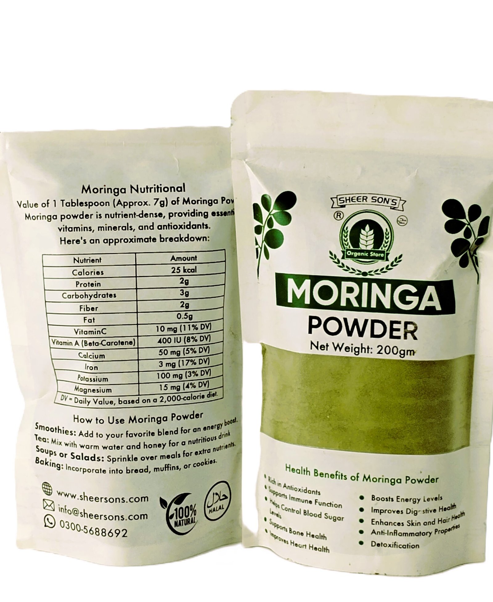 Because moringa is widely searched and used as a natural supplement, this product is ideal for customers interested in herbal, organic, or plant-based foods. It is suitable for people of all ages who want to add superfoods to their diet. Whether you are preparing healthy meals, smoothies, detox drinks, or herbal blends, Sheer Son’s Moringa Powder is a perfect choice.